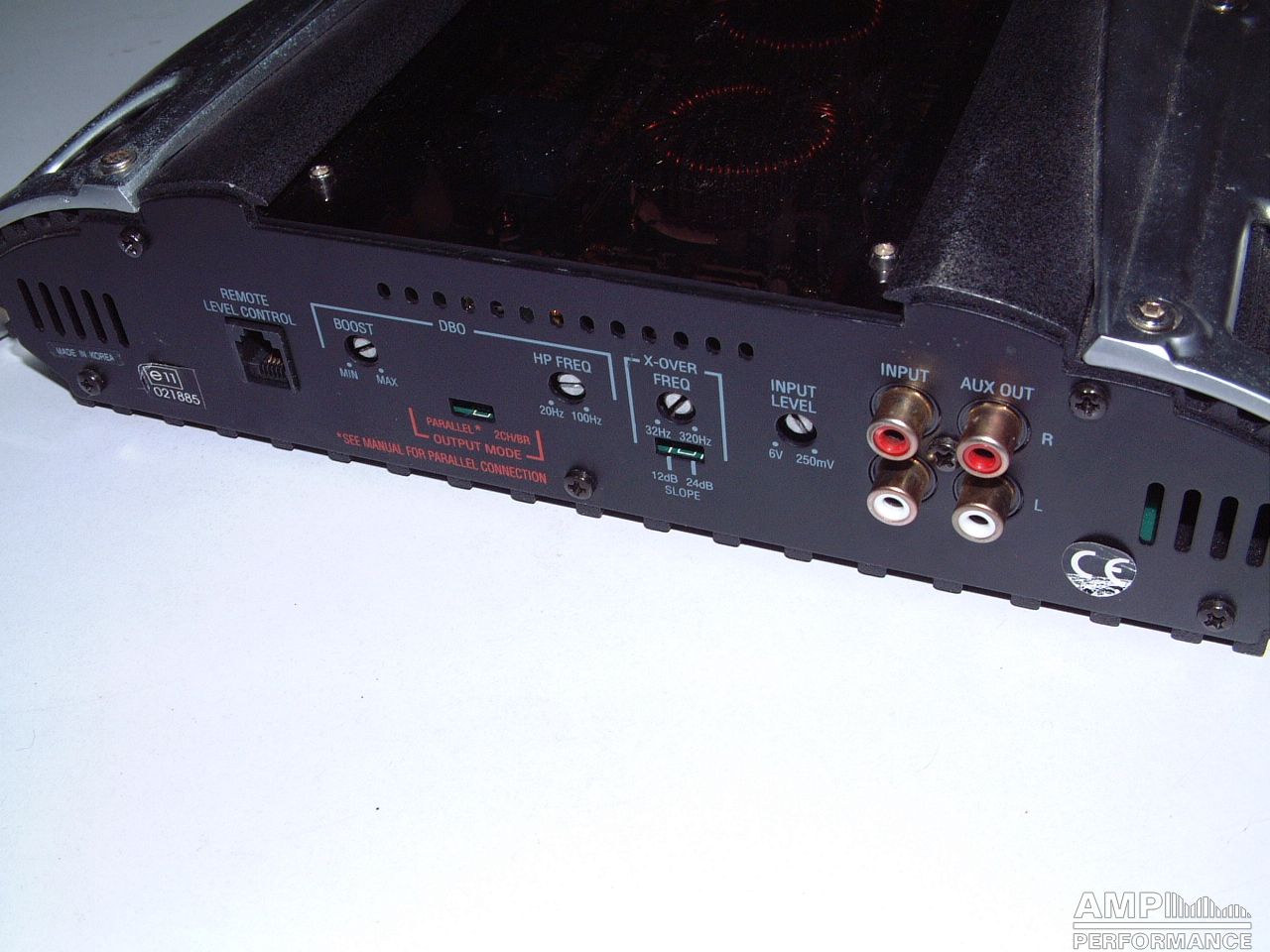 1 × 992 Watt Kanal 1 + 2 gebrückt an 4 Ohm bei 13,4V Versorgungsspannung