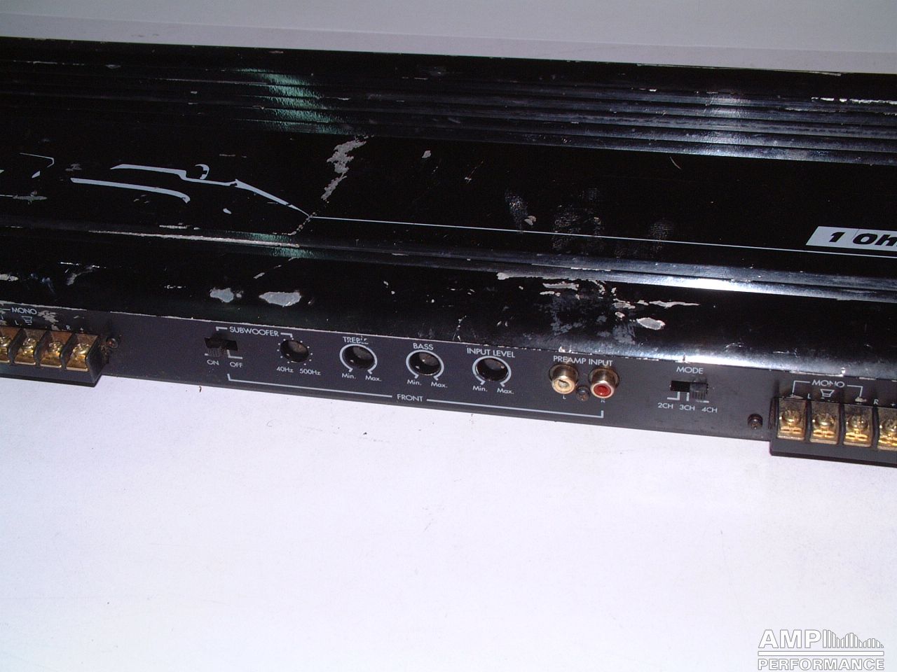 2 × 204 Watt Kanal 1 + 2 sowie 3 + 4 gebrückt an 2 Ohm bei 13,4V Versorgungsspannung