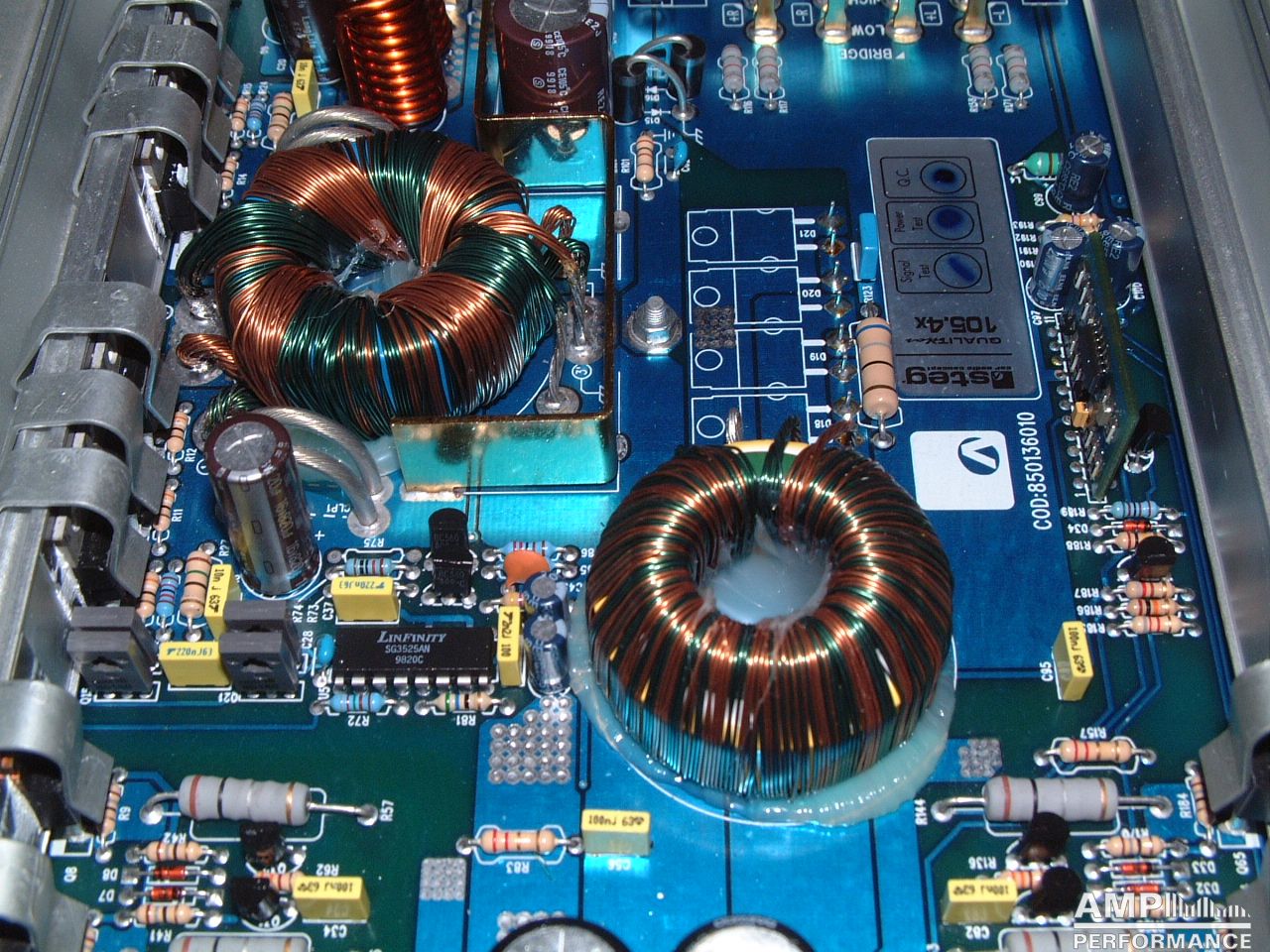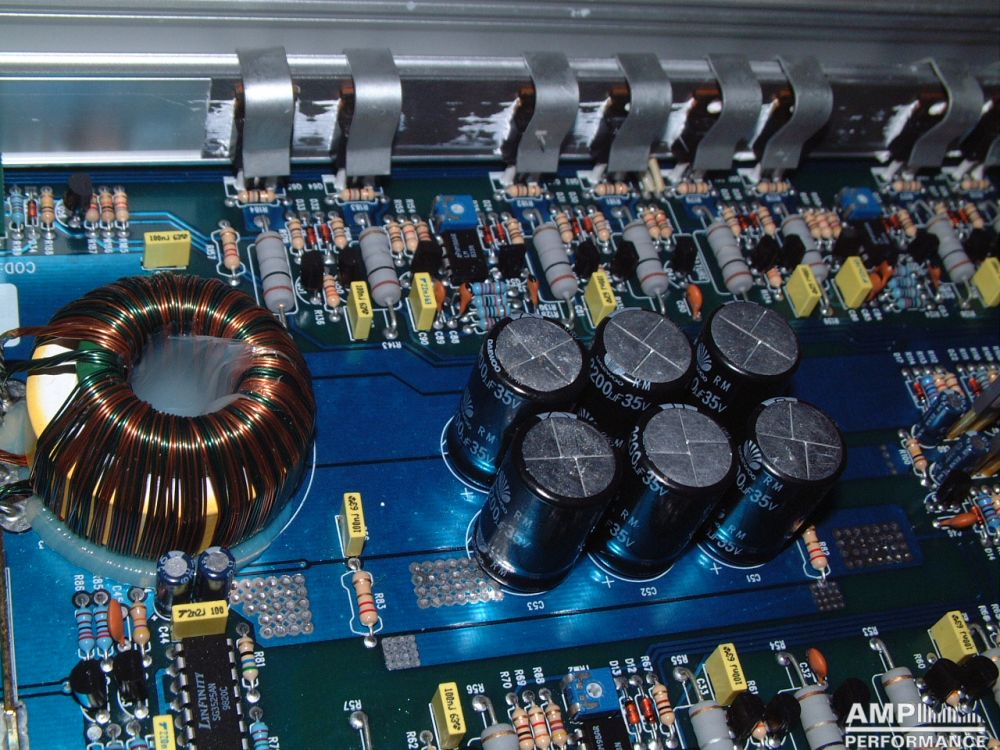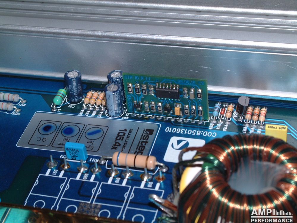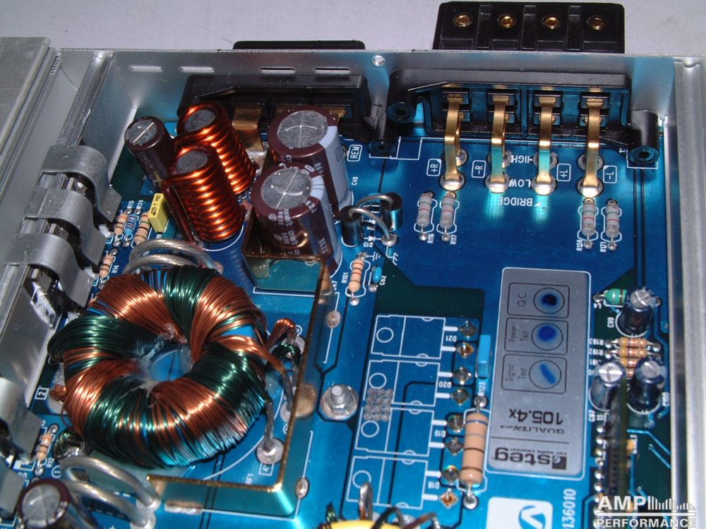 2 × 441 Watt Kanal 1 + 2 sowie 3 + 4 gebrückt an 4 Ohm bei 13,4V Versorgungsspannung