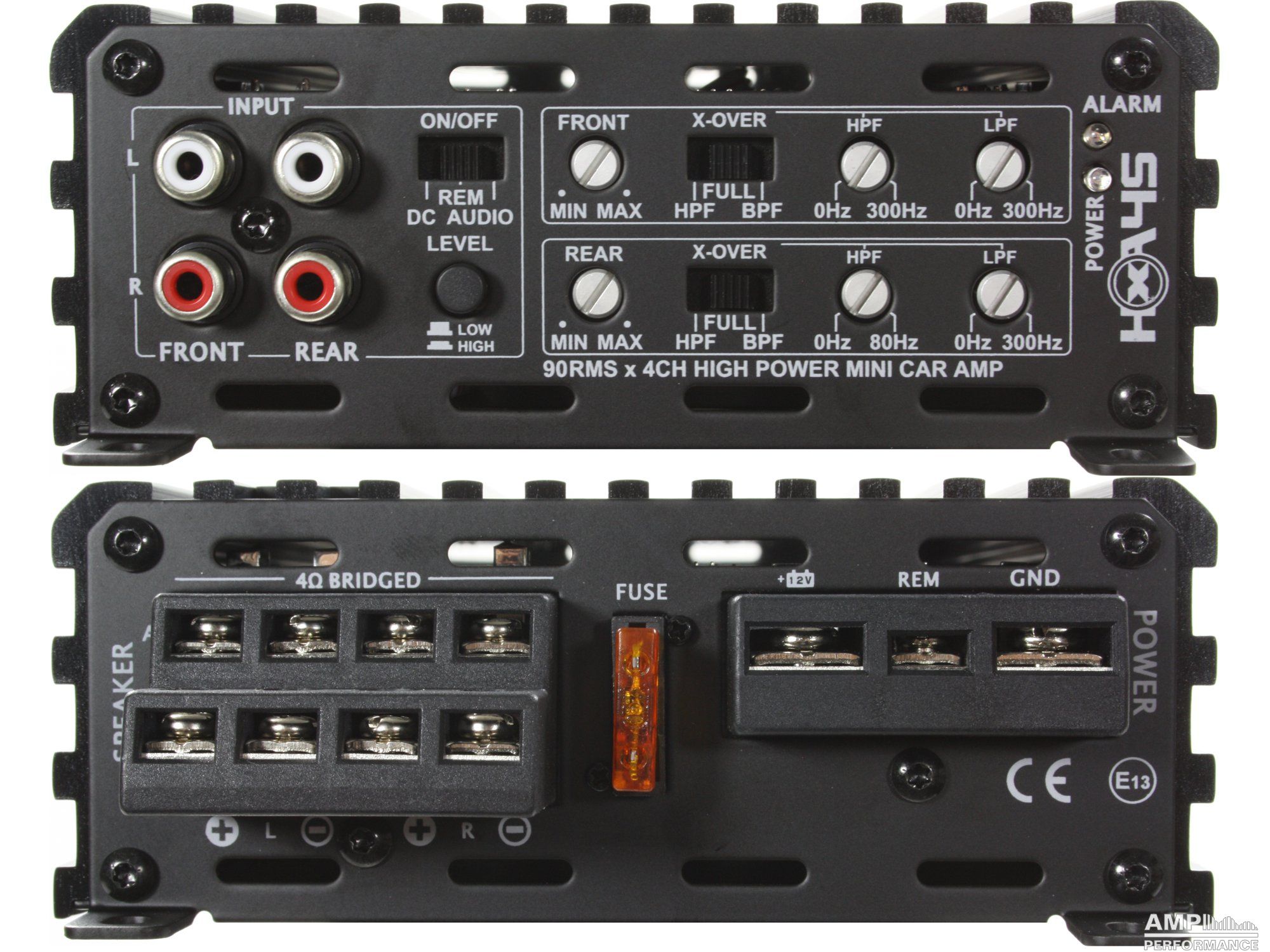 2 × 142 Watt Kanal 1 + 2 sowie 3 + 4 gebrückt an 4 Ohm