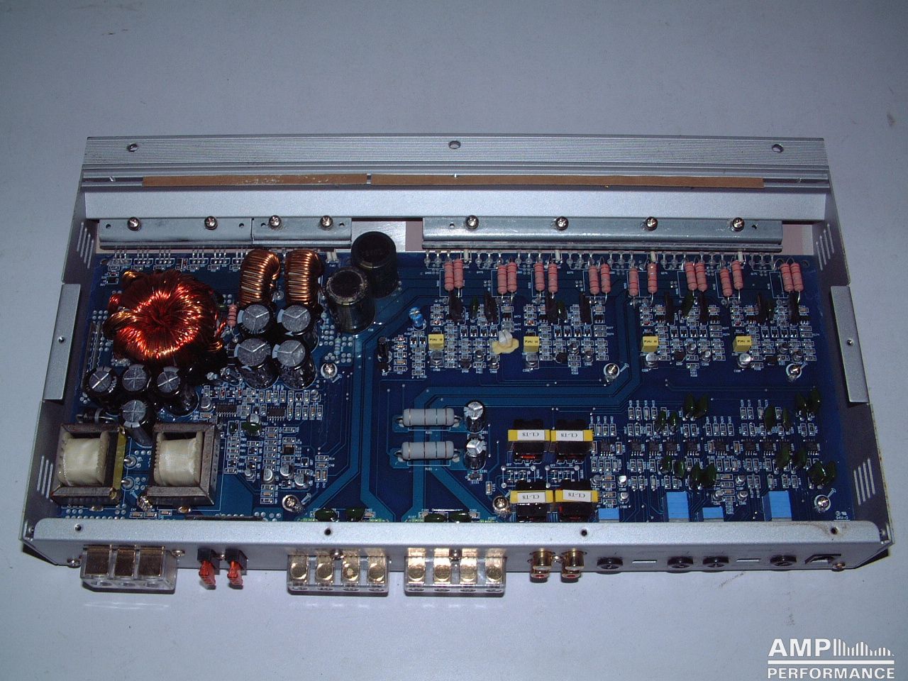 2 × 324 watts, channel 1 + 2 and 3 + 4 bridged at 4 Ohm with 13,4V supply voltage