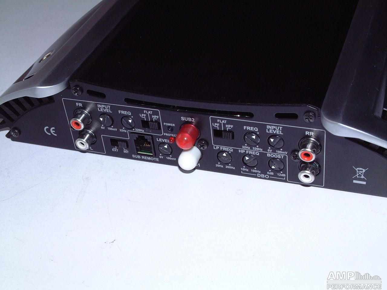 2 × 64 watts, channel 1 + 2 at 4 Ohm