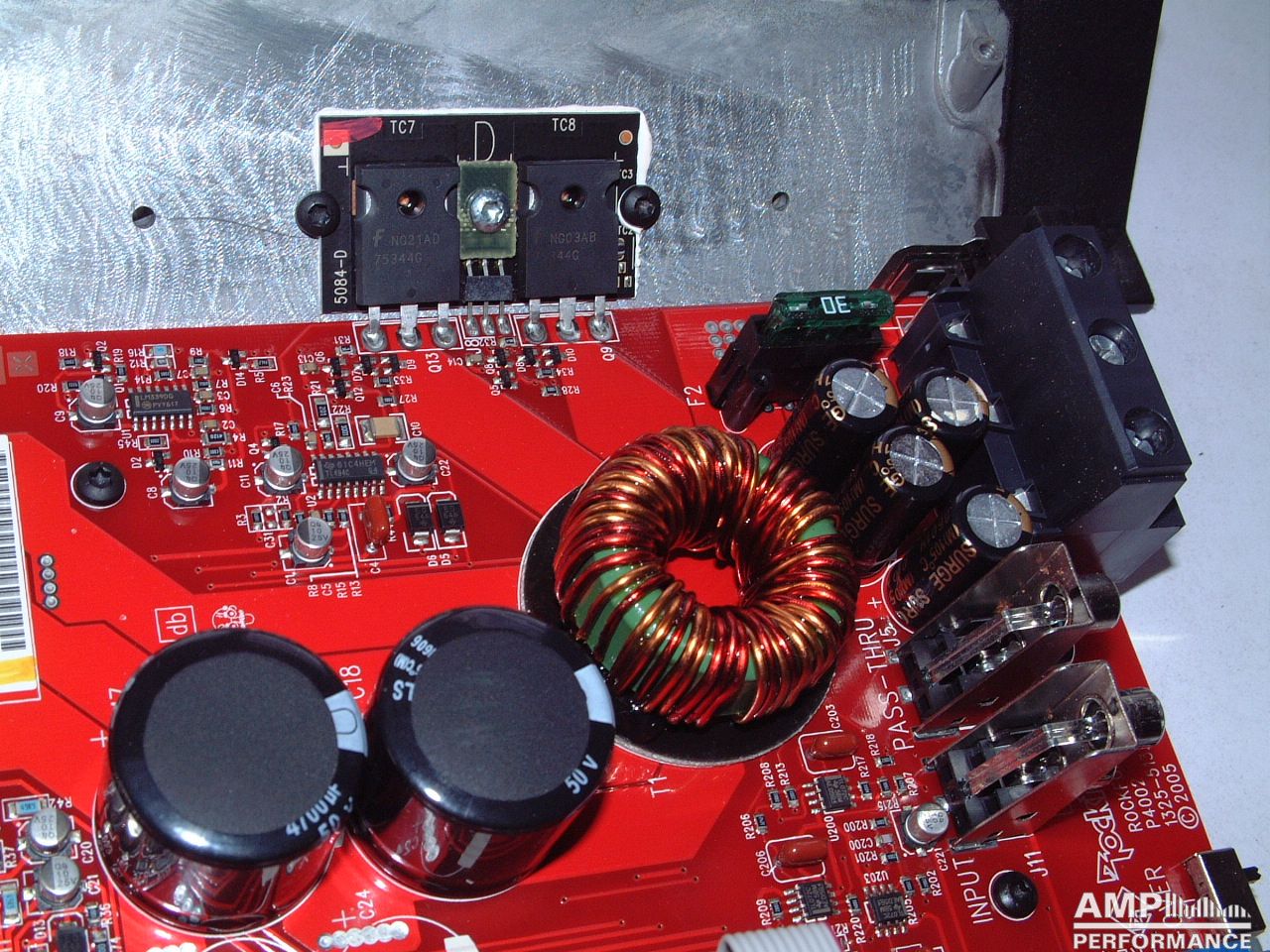 1 × 557 watts, channel 1 + 2 bridged at 4 Ohm with 13,4V supply voltage