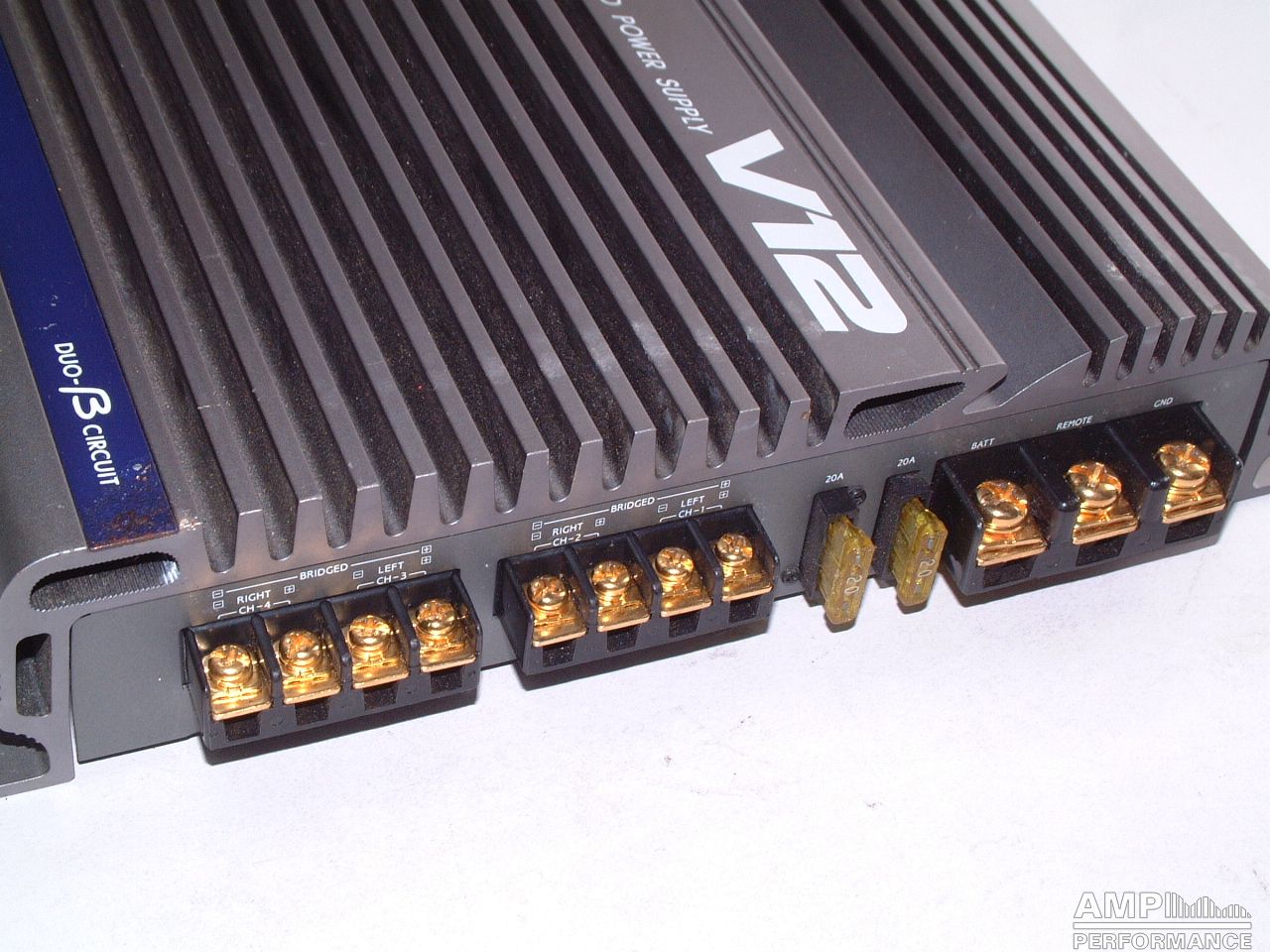 2 × 74 watts, channel 1 + 2 at 4 Ohm