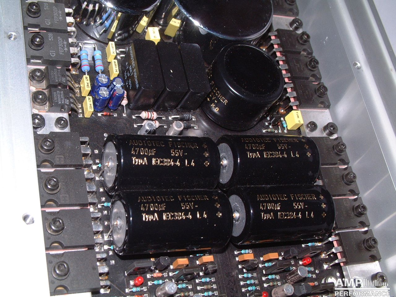 1 × 1086 watts, channel 1 + 2 bridged at 2 Ohm with 13,4V supply voltage