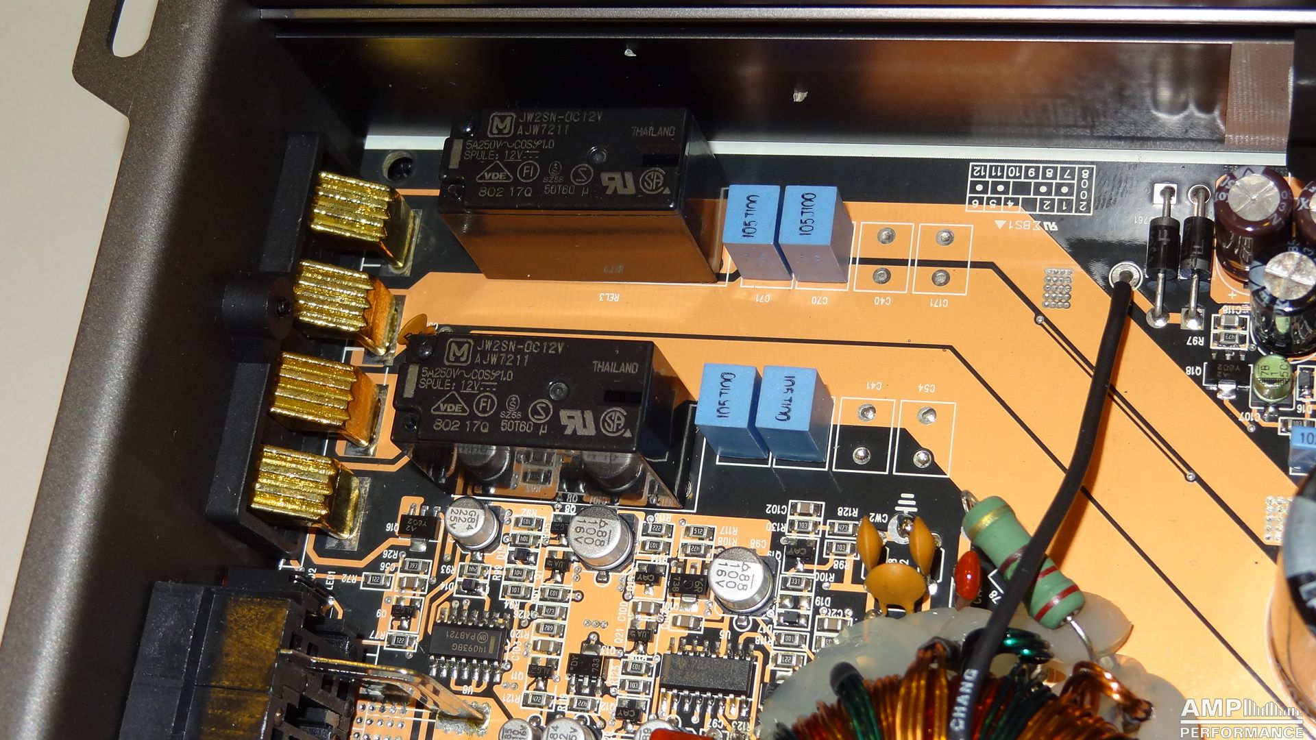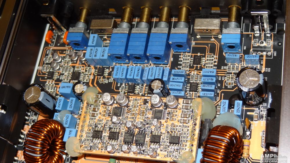 2 × 221 watts, channel 1 + 2 at 4 Ohm with 13,7V supply voltage