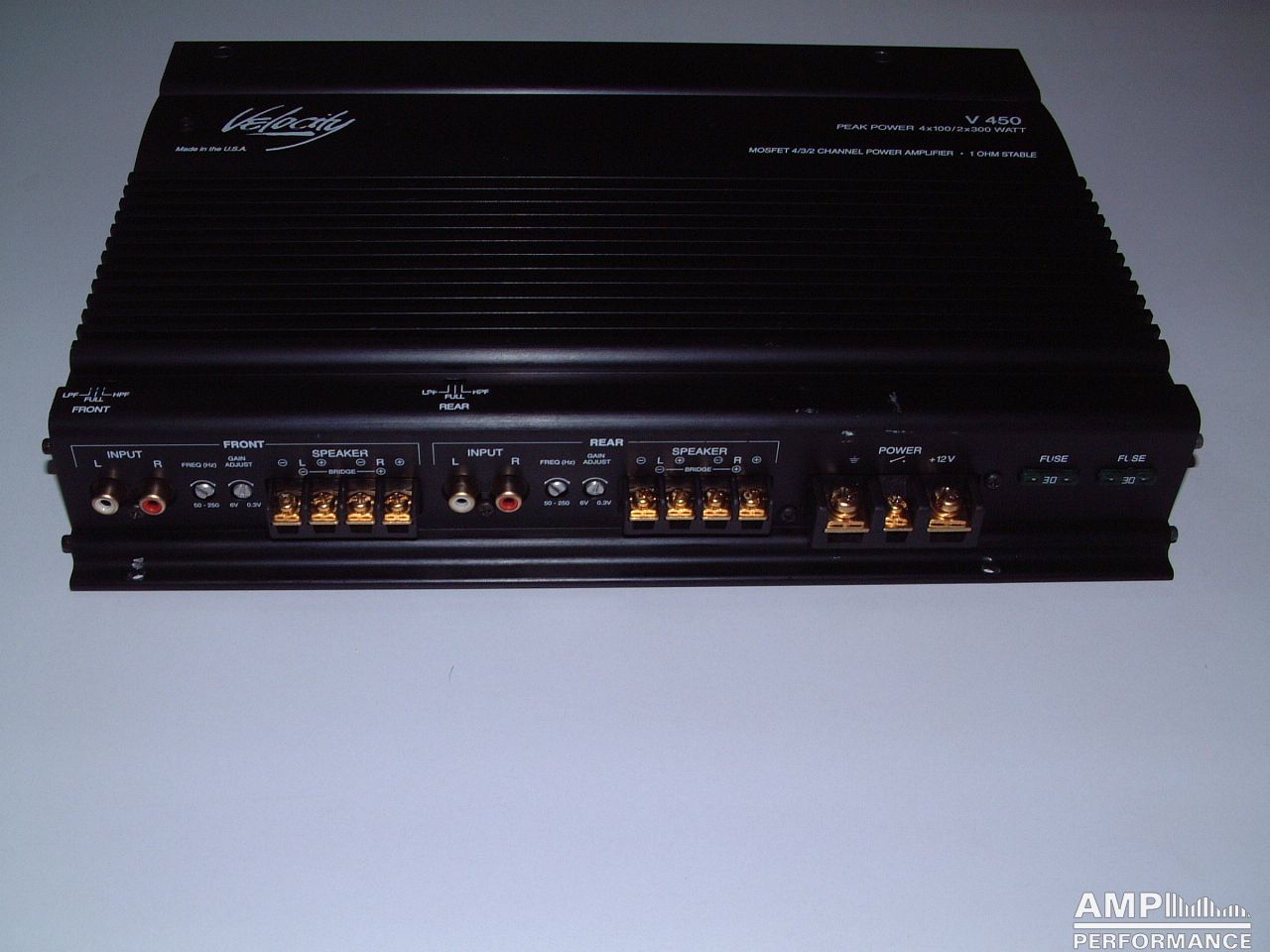 2 × 234 watts, channel 1 + 2 and 3 + 4 bridged at 4 Ohm