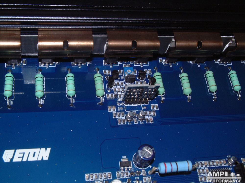 1 × 1170 watts, channel 1 + 2 bridged at 4 Ohm with 13,3V supply voltage