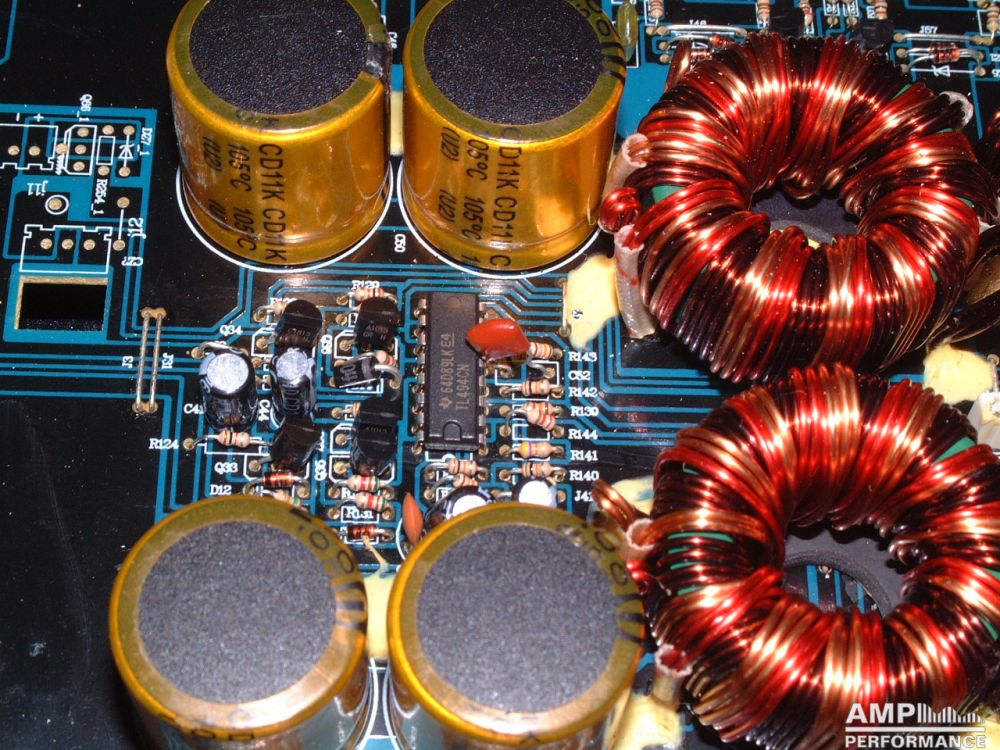 1 × 468 watts, channel 1 + 2 bridged at 2 Ohm (keine offizielle Freigabe)