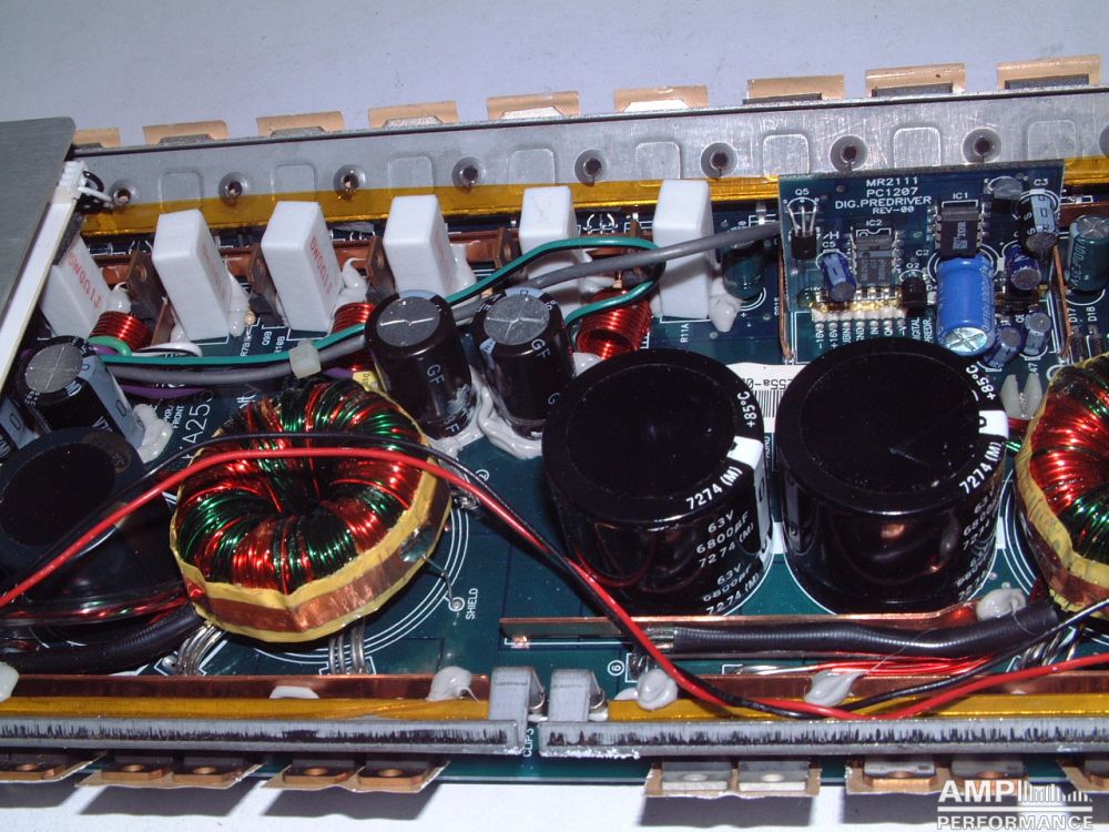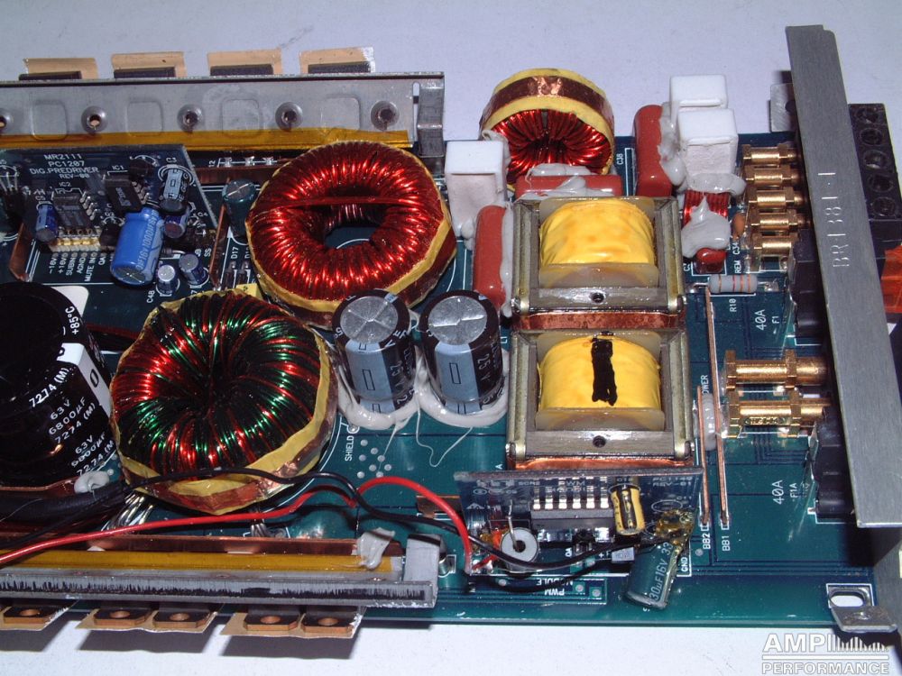 1 × 415 Watts channel 5 at 2 Ohm with 13,3V supply voltage