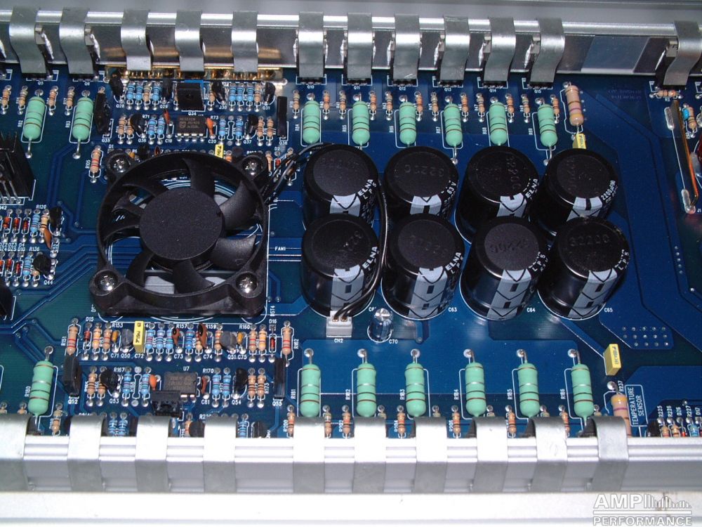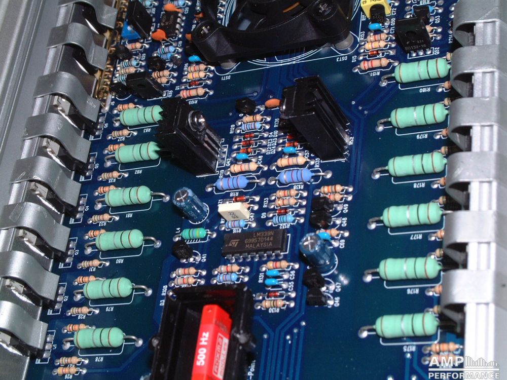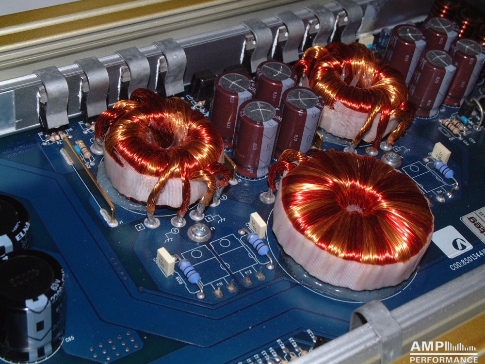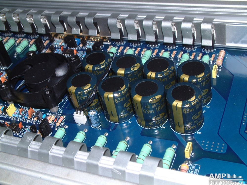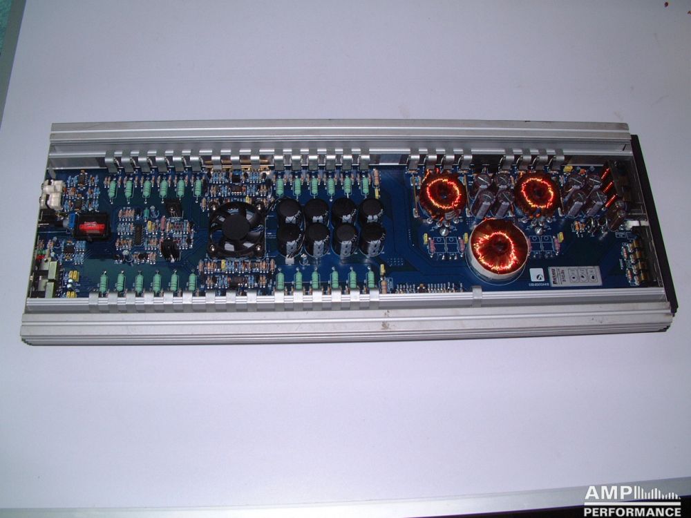 1 × 1296 watts, channel 1 + 2 bridged at 4 Ohm with 13,3V supply voltage