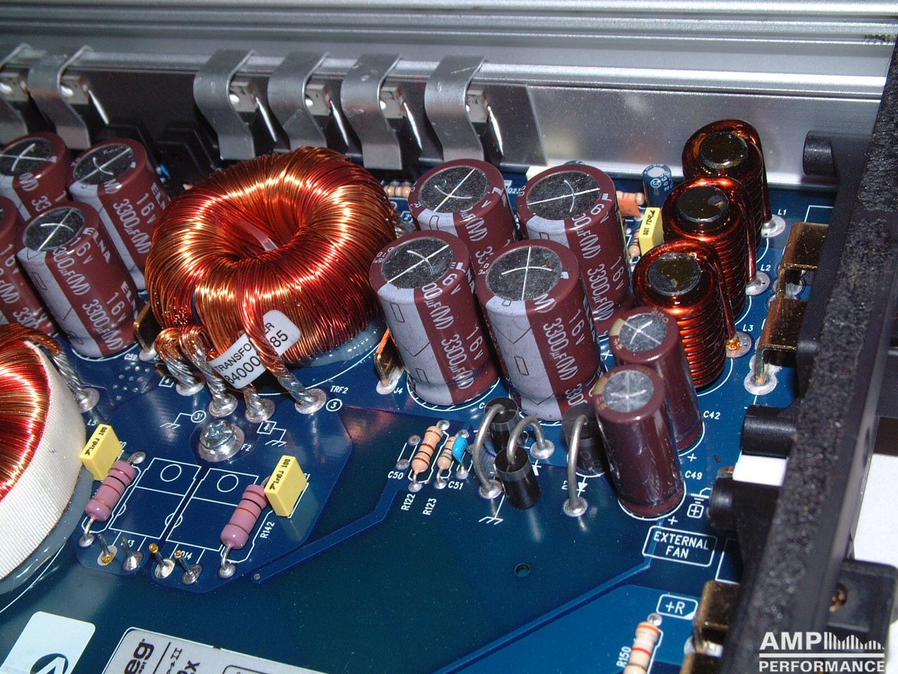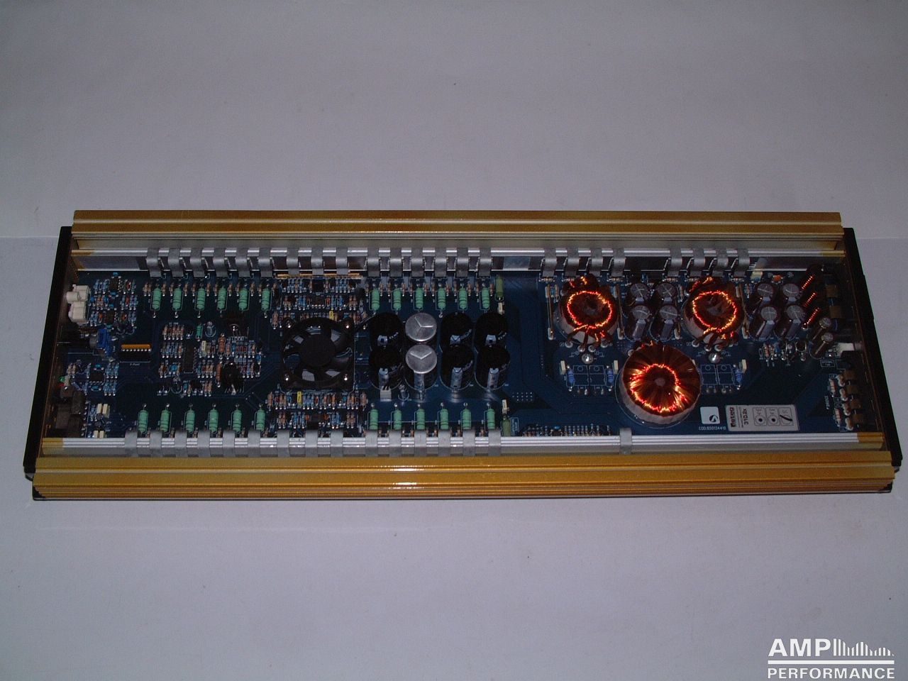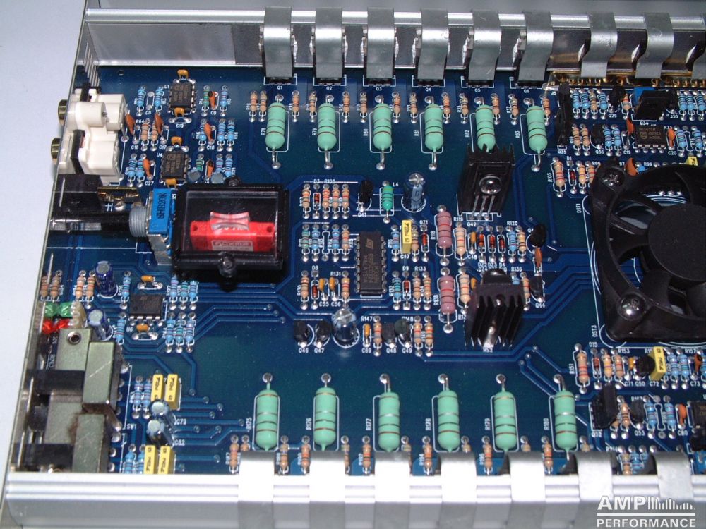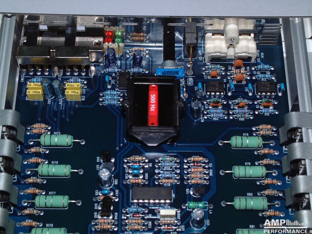 1 × 1296 watts, channel 1 + 2 bridged at 4 Ohm with 13,3V supply voltage