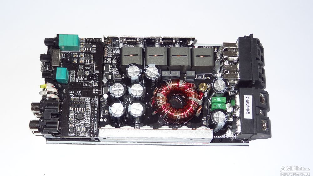 4 × 90 watts, channel 1 up to 4 at 4 Ohm with 13,7V supply voltage