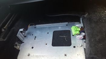 Installation location VW Passat Dyaundio Amplifier The Dynaudio amplifier is located in the Passat under the driver's seat. Please note the double connector lock, top and bottom. back