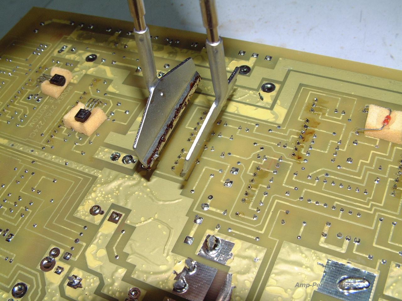 Netzteil- und Endstufenschaden, Tausch von Leistungshalbleitern auf einer doppelseitig kaschierten Patine