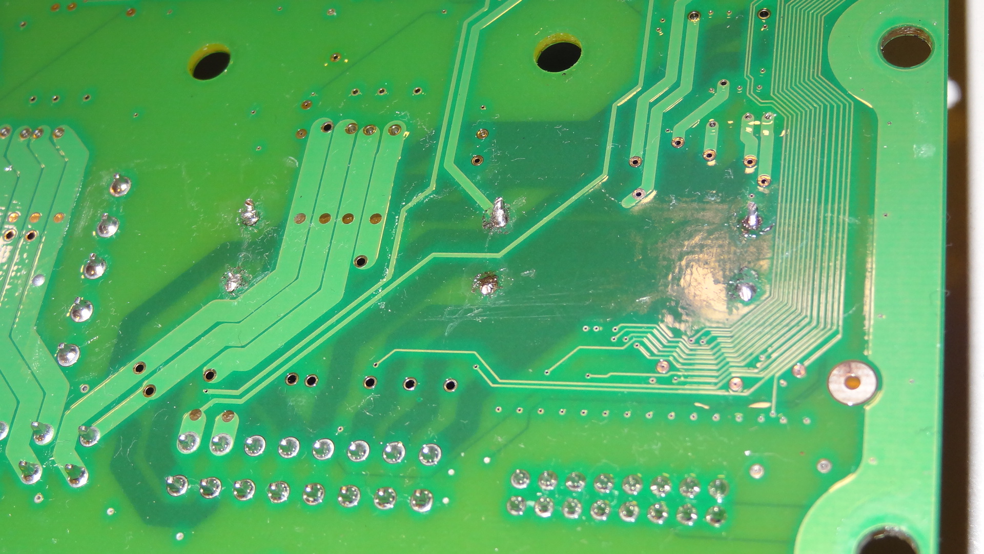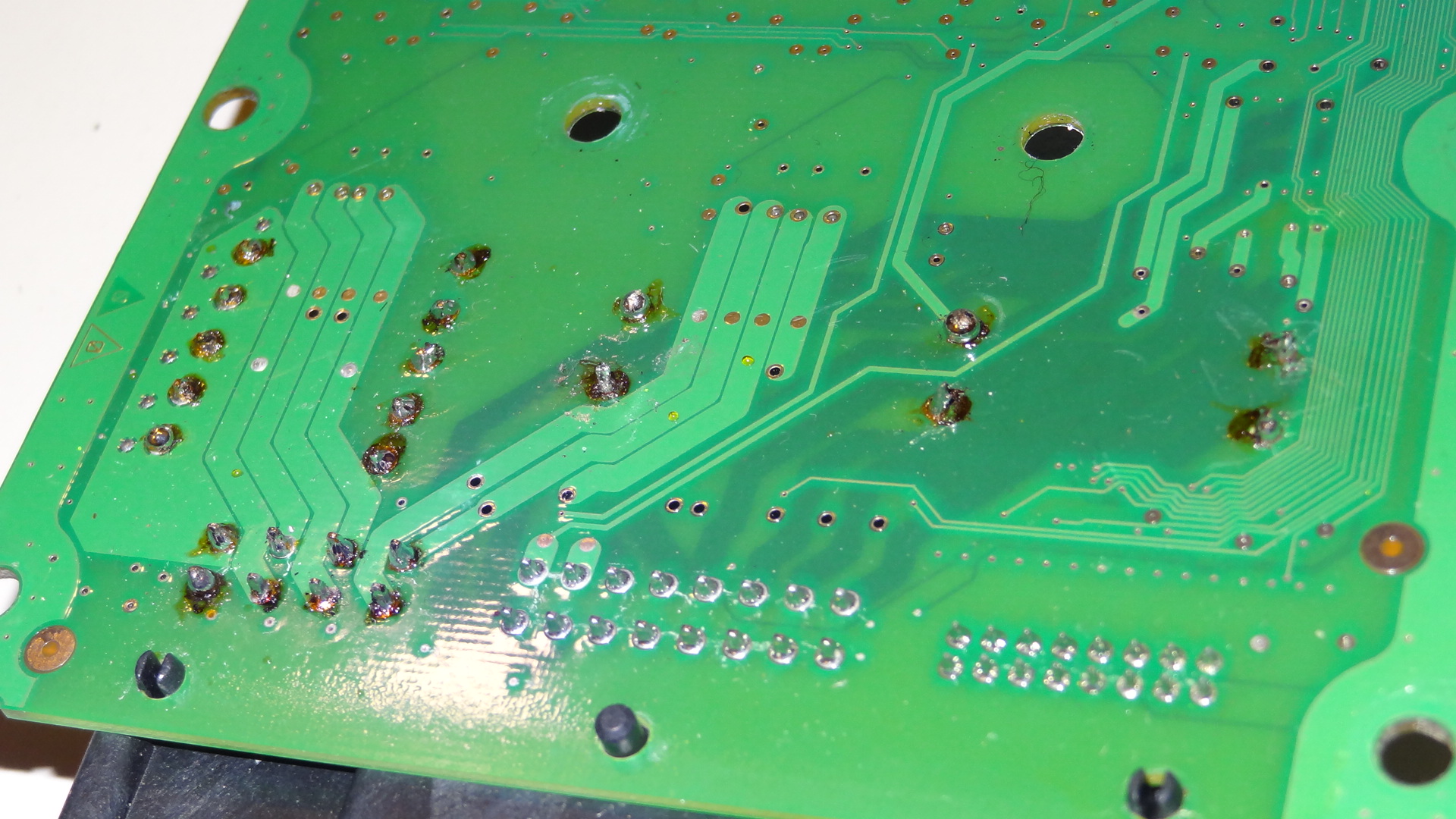 Wir finden in diesem Gerät eine Multilayer-Platine vor, die bei dem fachgerechtem Tausch von Bauteilen in Durchsteckmontage relativ hohe Anforderungen an das Löt-Equipment und dessen Umgang darstellt.