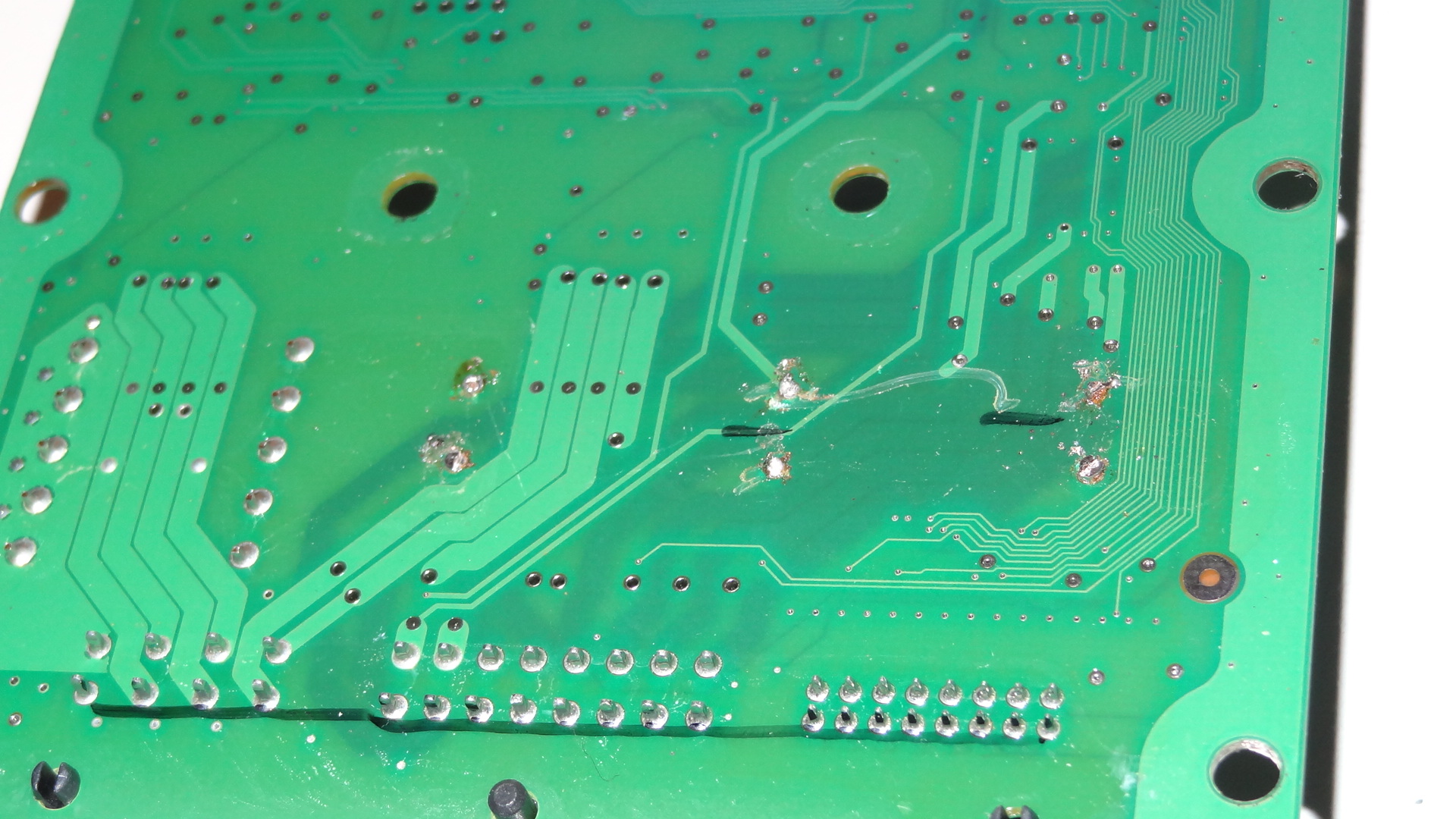 Eigene Erfahrungen von eingesendeten Geräten zeigen aber, dass oft die Durchkontaktierungen beschädigt werden und somit zum Teil auch Verbindungen zu innen liegenden Kupferlagen verloren gehen.
